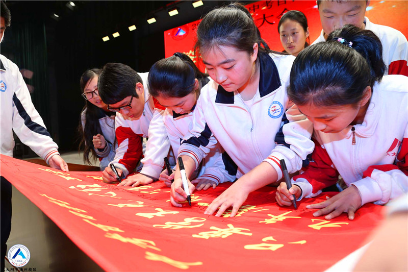 大会结束之际,在校领导、老师、家长的见证下,学生们把自己的名字签到到了各班级宣誓旗帜上。