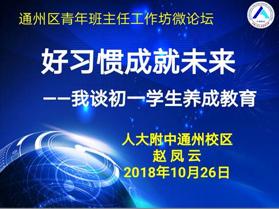 2018年10月26日上午9:00通州区青年班主任工作坊微论坛《好习惯成就未来——我谈初一养成教育》在人大附中通州校区行政楼第一会议室召开,本次微论坛由赵凤云老师组织并主持召开。