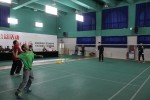 第二阶段是由冠军团队(谢鑫和赵莹凯)分别和范校长、临河里小学生徐邦正配对,呈现了一场精彩的羽毛球比赛,在场的师生和家长深刻地体会到了羽毛球的竞技乐趣。